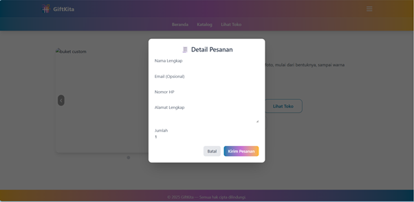 Akan muncul pop-up Detail Pesanan . Isi data berikut: